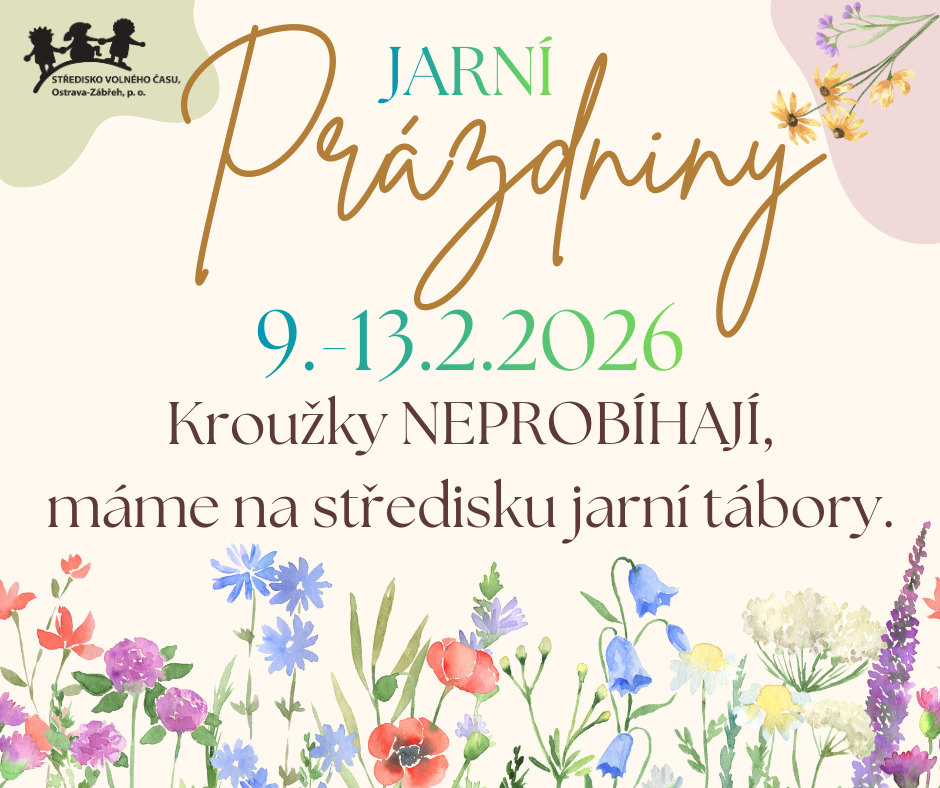 V termínu 9.-13.2.2026 má Ostrava jarní prázdniny, KROUŽKY NEPROBÍHAJÍ.