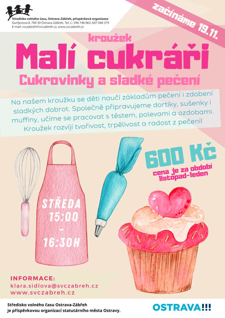 Na našem kroužku se děti naučí základům pečení i zdobení sladkých dobrot. Společně připravujeme dortíky, sušenky i muffiny, učíme se pracovat s těstem, polevami a ozdobami. Kroužek rozvíjí tvořivost, trpělivost a radost z pečení!