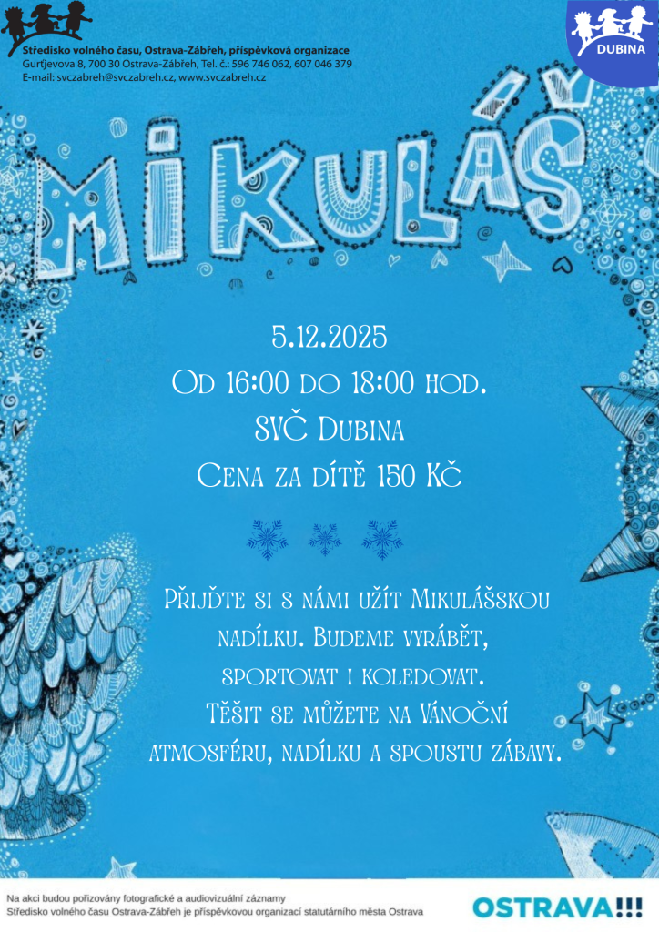 Akce je určena POUZE pro děti navštěvující SVČ Dubina - na pozvánku.